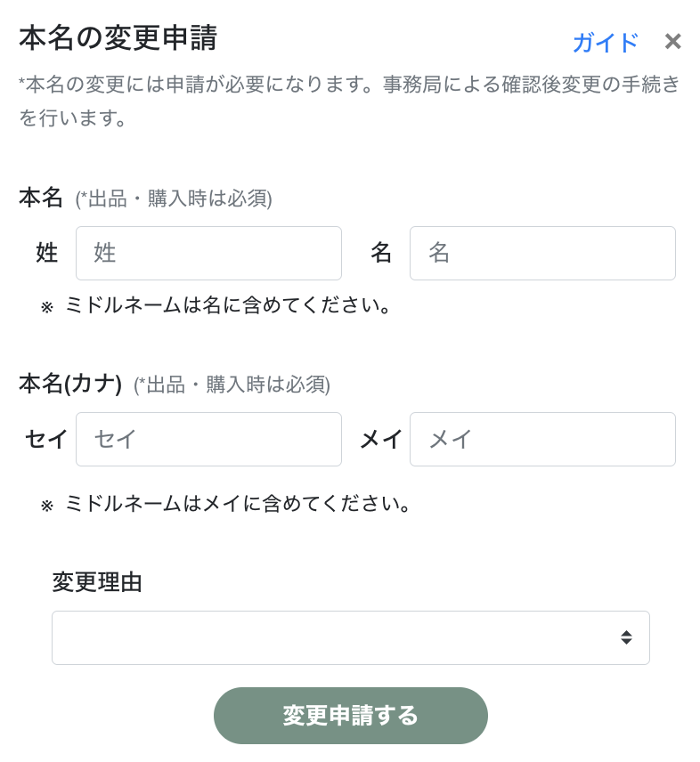 ※不正取引防止の観点から、本名の変更(婚姻等)は変更申請が必要になります。