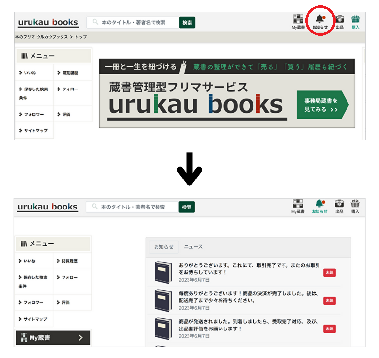 お支払いや商品の発送、評価完了など他のユーザーとの取引に関する情報を受信することができます。