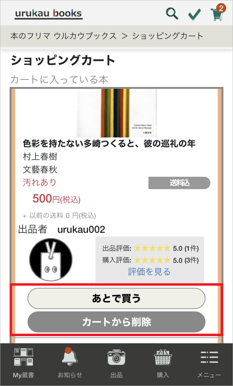 ▲[あとで買う]をタップした商品は「あとで買う」に移動します。