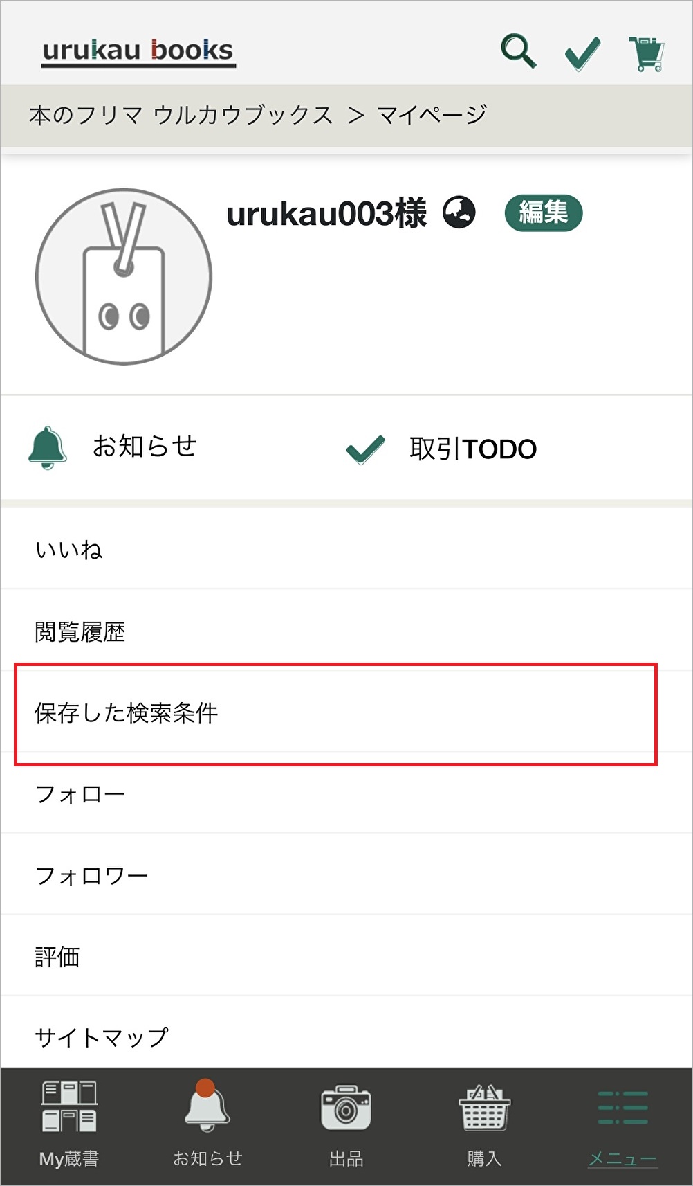 保存した検索条件はメニューにて確認・編集ができます。