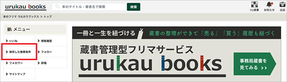 サイドメニューもしくはフッターから[保存した検索条件]をクリックします。