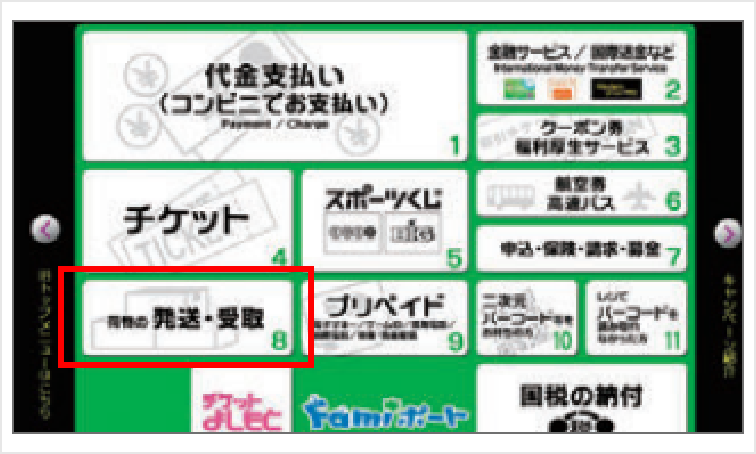 1.Famiポートのメニュー「配送サービス」を選択します。
