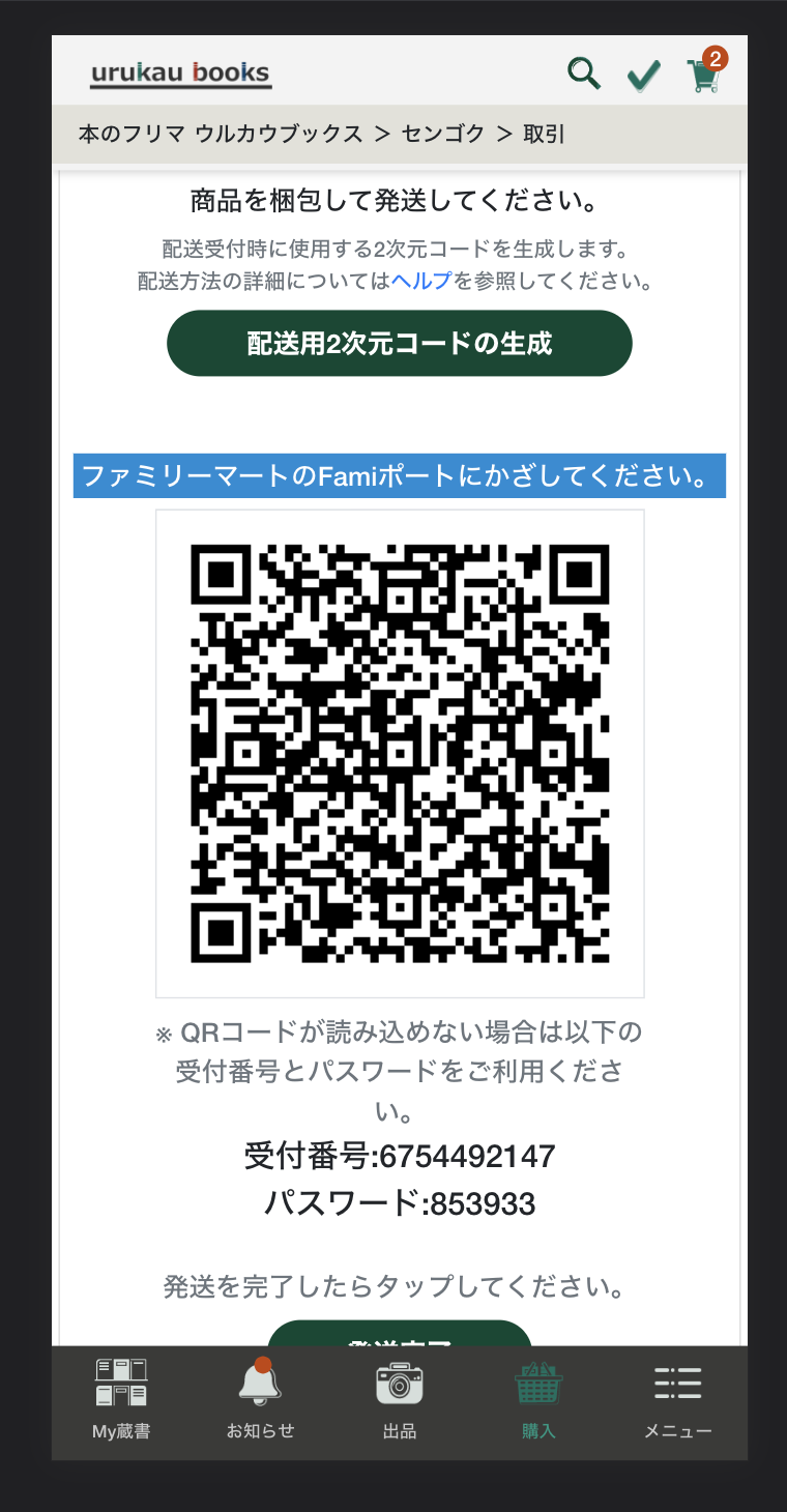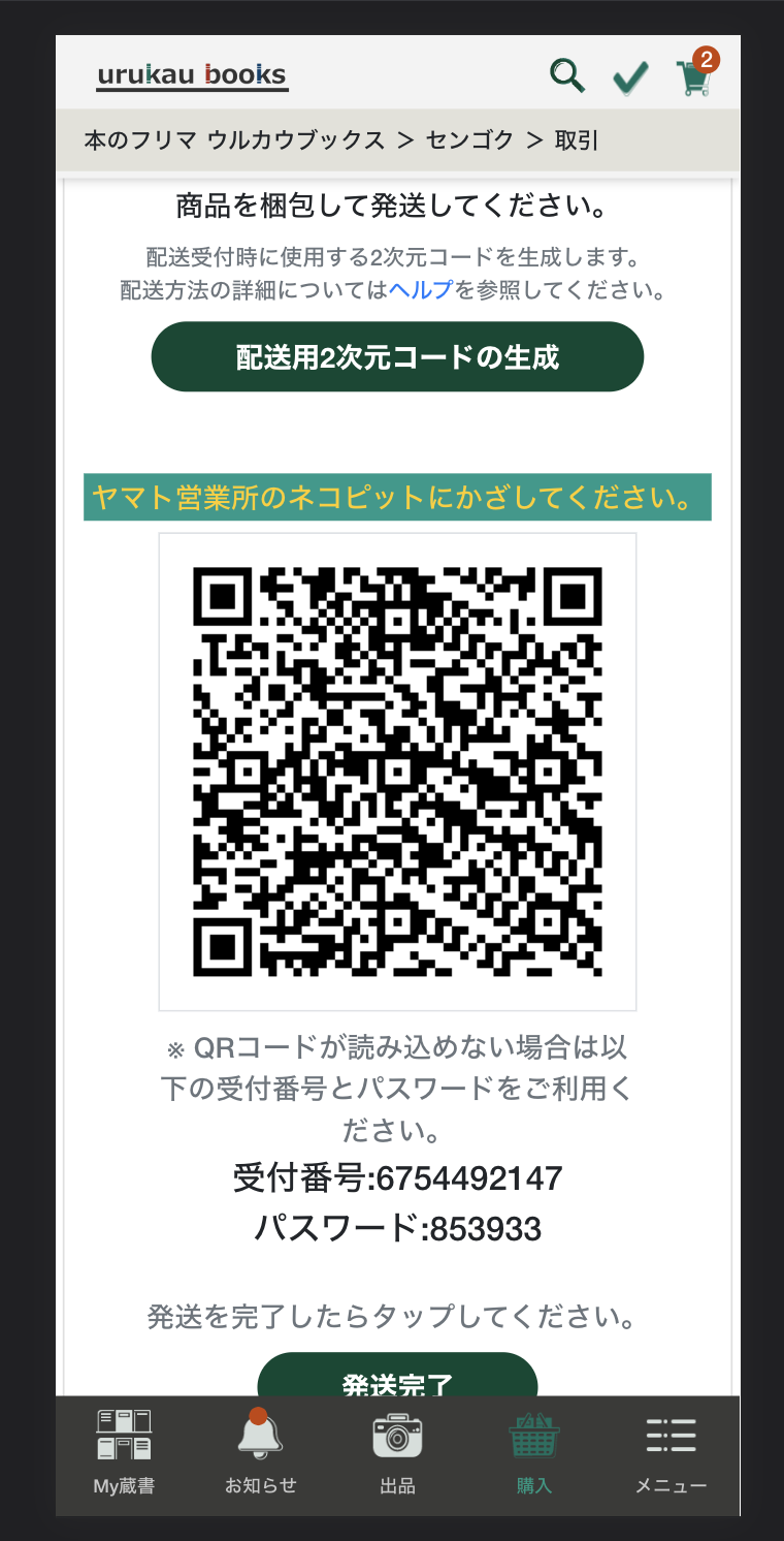 ※トラブル防止のため、商品発送前に、本サービスから[発送完了]ボタンをタップ又はクリックしないでください。