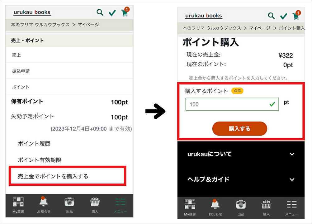 urukauでは、1ポイント=1円として、サービス内で商品を購入する際に利用できます。