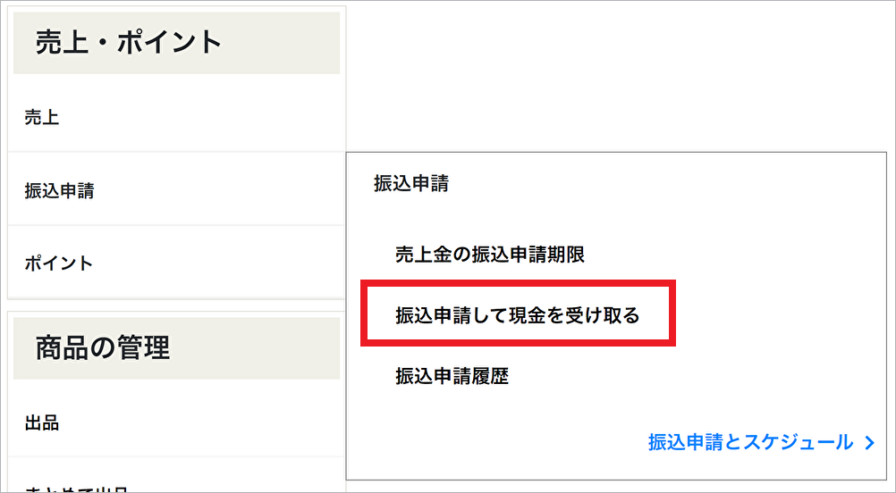 また、売上金について、振込申請を行うことで、ご指定の銀行口座への振込も可能です。