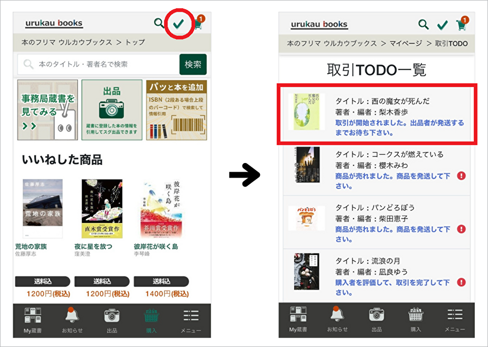 ▲トップから取引TODOをタップし、メッセージのやり取りをしたい取引をタップします。